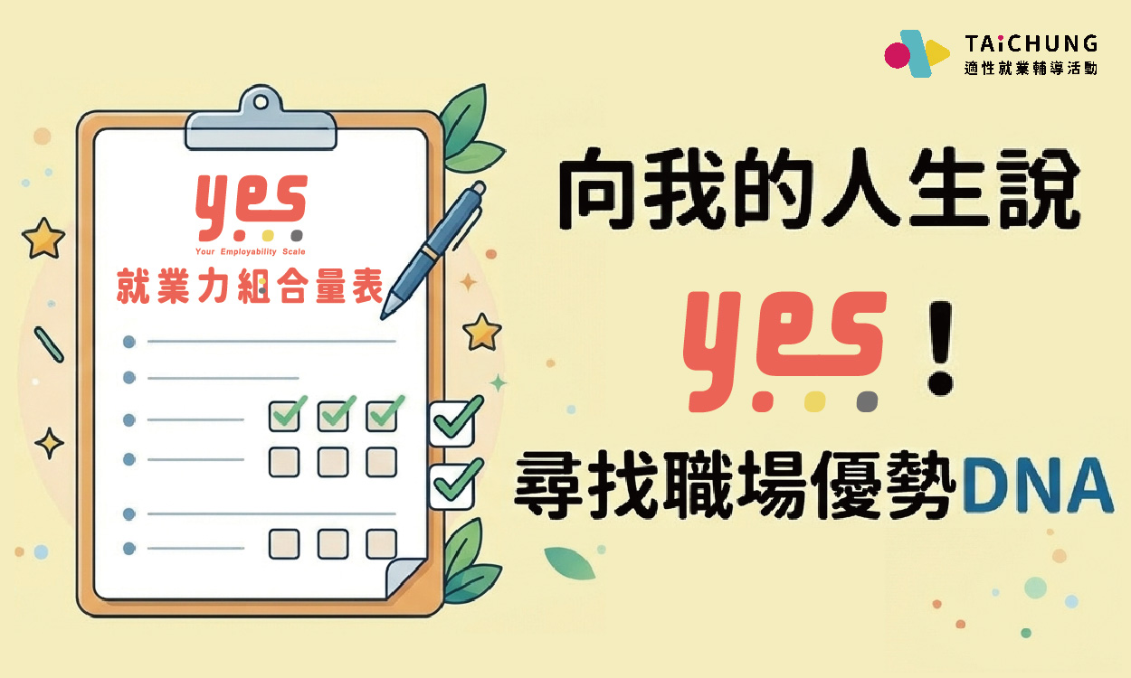 《YES就業力組合量表》是以台灣就業市場所設計出的職涯測評工具,首度將個人與環境納入考量,讓求職者更加了解職涯方向。