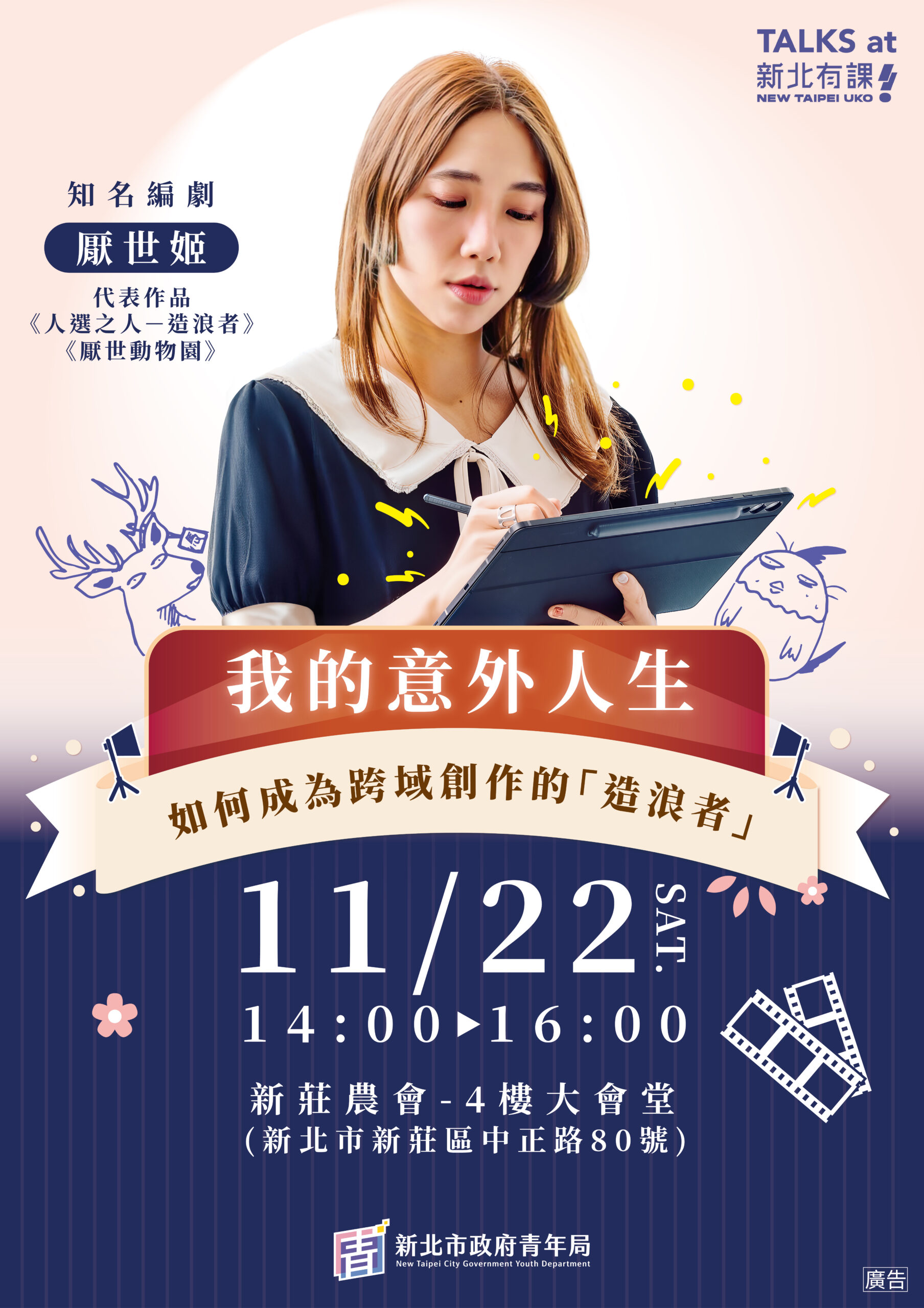 11/22請您一起來聽厭世姬《我的意外人生 如何成為跨領域創作的「造浪者」》