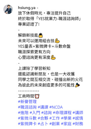 想知道個案概念化與跨量表的分析怎麼結合進行實務的運用,歡迎助人工作者們,加入YES就業力職涯諮詢師的行列,從課程中,也獲得正向的能量。請多關注官網明年度認證班開課資訊!